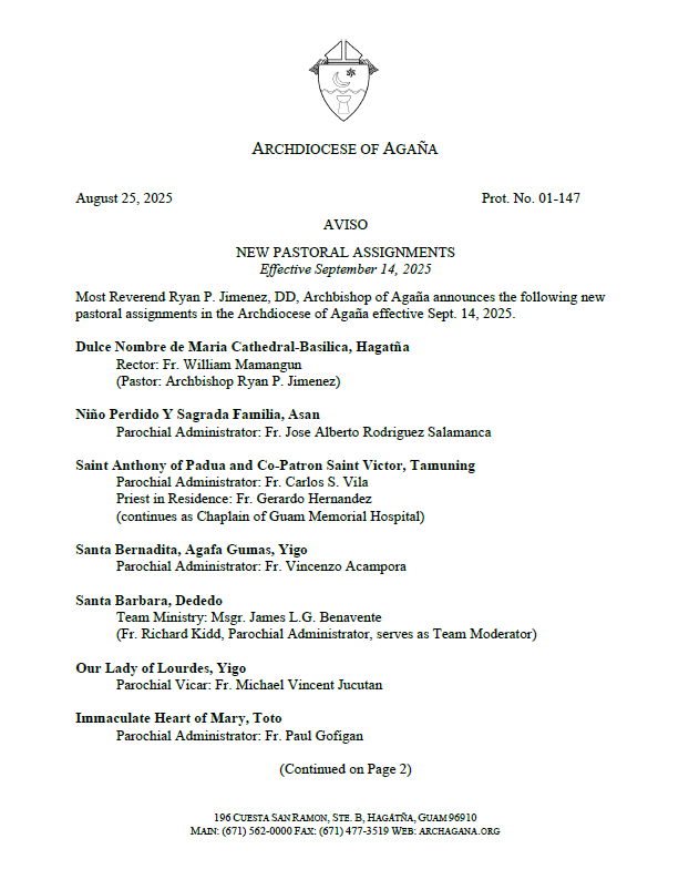 AVISO NEW PASTORAL ASSIGNMENTS September 17, 2025 | No Comments | Messages Effective September 14, 2025 Read More